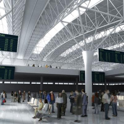Version 1 offers single-family solution covered with vast steel construction, whereas in version 2 the multi-storey construction can be clearly seen. In the both versions it is foreseen a modular extension of the low buildings, flanking the dominant construction. All the premises with major airport functions are situated in the central part of the building. After an insignificant correction (foreseen and specified in the design) they will remain to be effective after the extension in 2025. The difference between the two versions is with respect to the type of the roofing construction; in version 1 – it is made of steel special truss, in version 2 – it is mixed, the larger part is reinforced concrete, the rest part is with steel special truss.