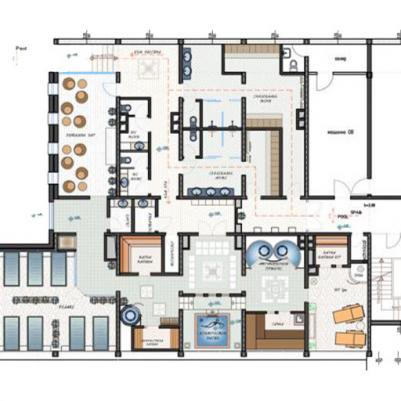 Complete reconstruction of the main entrance of the hotel and adjacent windfang and a new spa center.